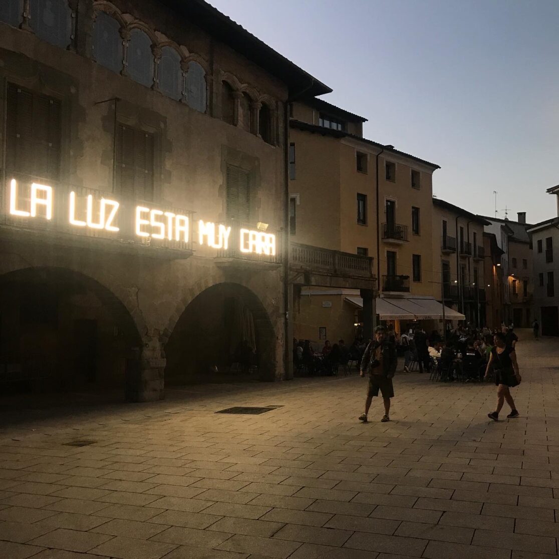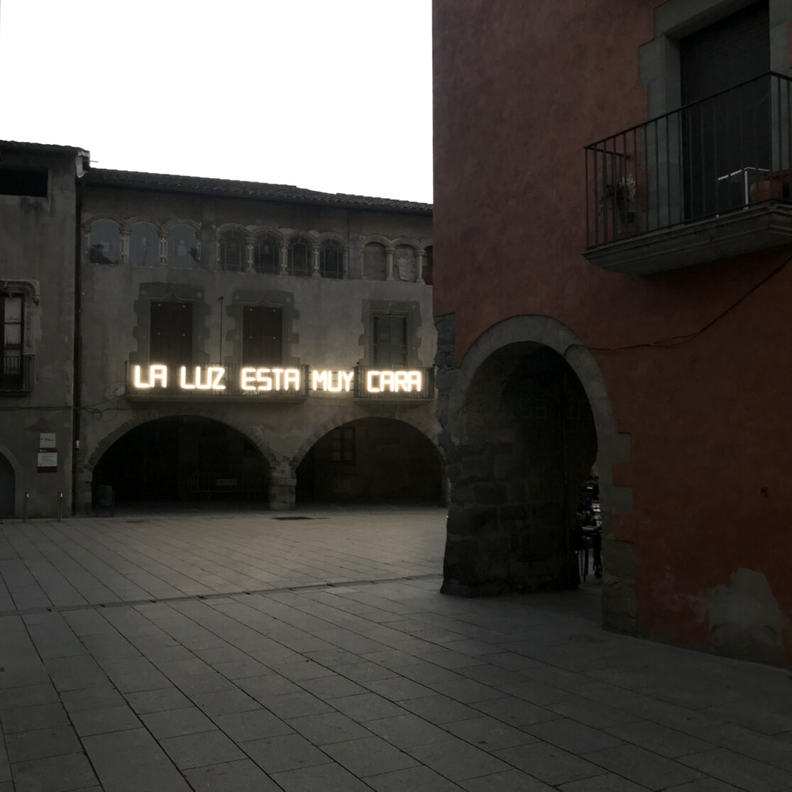 El proceso de las últimas décadas confirma de forma clara aquella intuición conceptual de Antonio Caro en 1978 y refuerza su vigencia. Bajo éste premisa la instalación LA LUZ ESTÁ MUY CARA pone de manifiesto la actual crisis económica que vivimos en nuestro contexto actual. El actual encarecimiento de los productos y la desproporcional subida de precios de las energías y especialmente de la luz, sirve como pretexto para hablar de la expansión de esta precarización que a menudo sólo identificábamos en los países que mal llamábamos “subdesarrollados”.