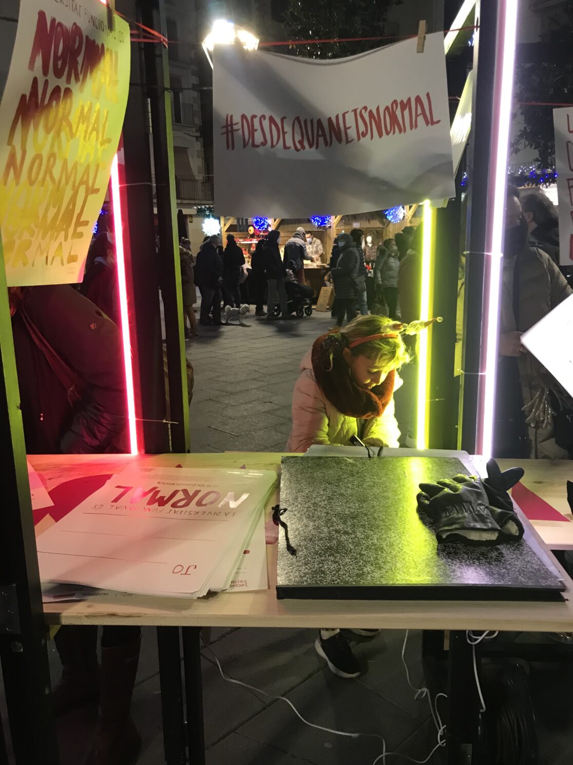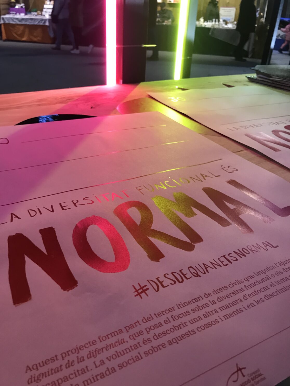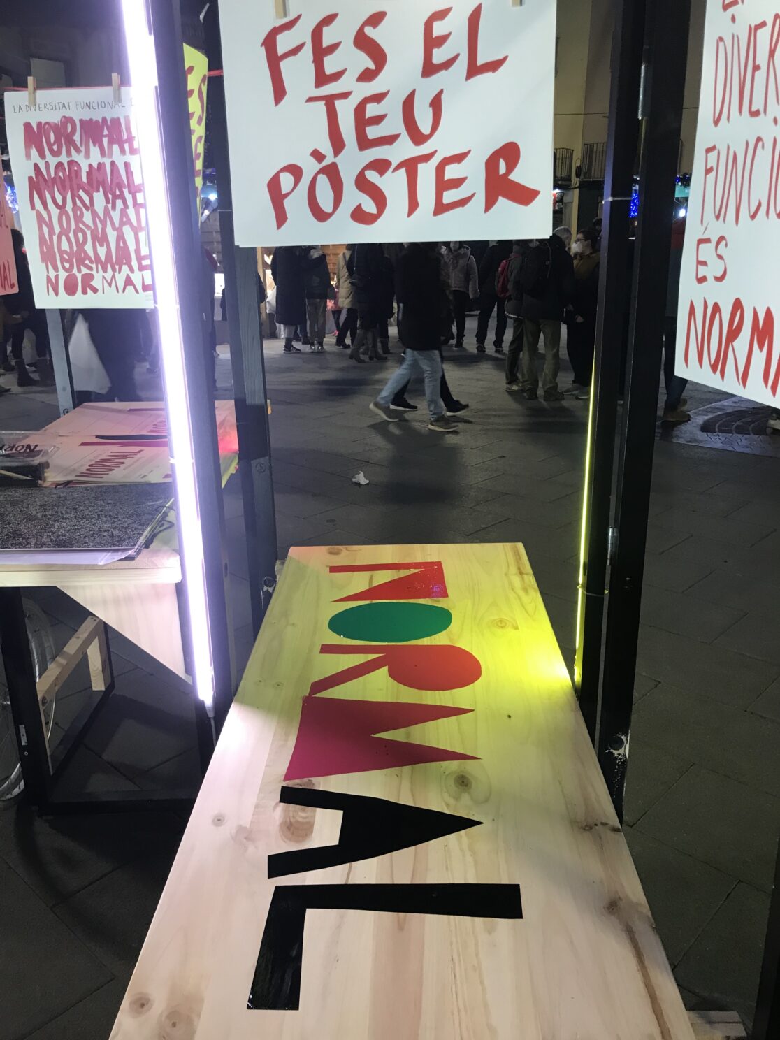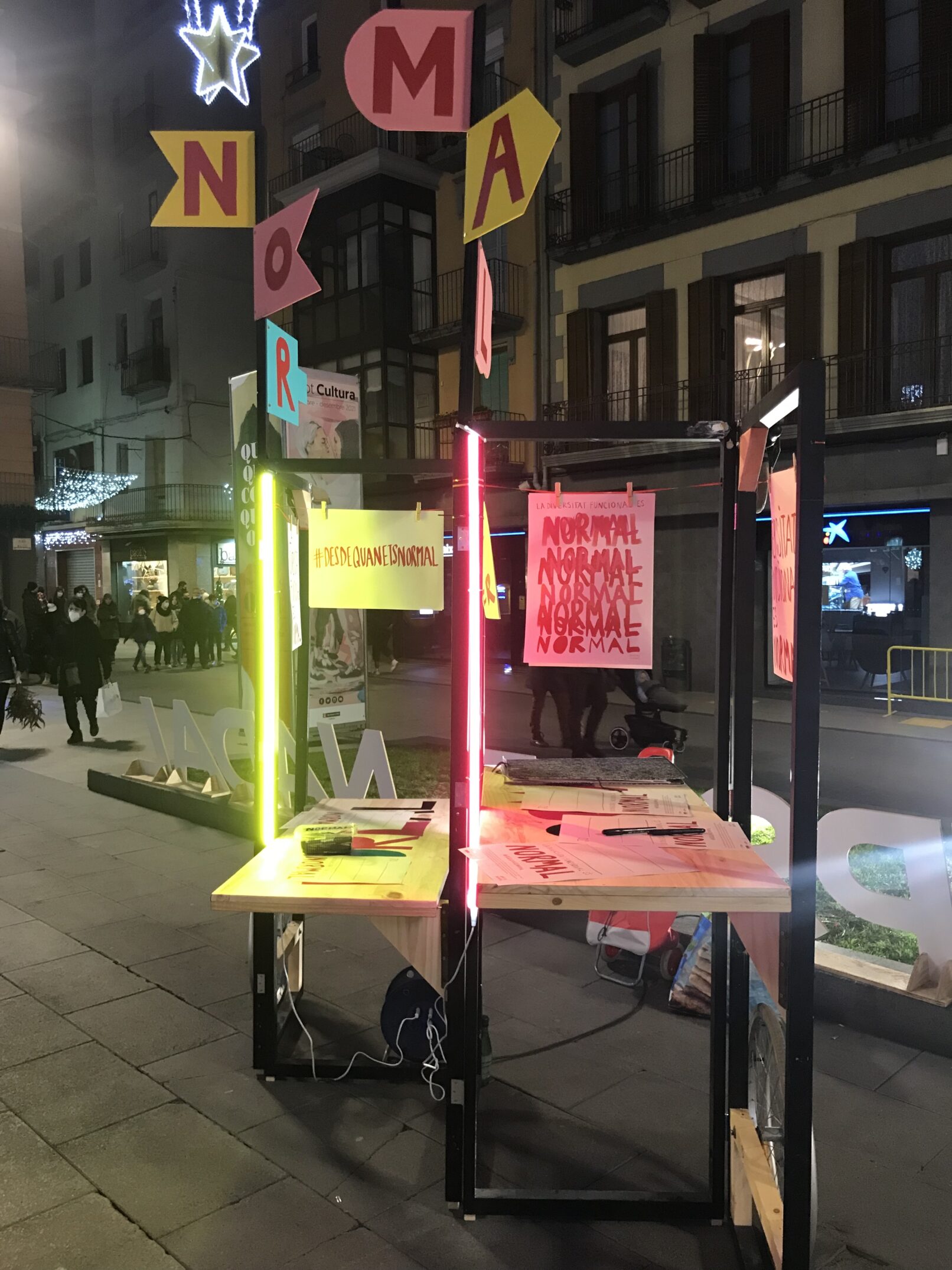 Este dispositivo móvil de fabricación de pósters, invita a todo el mundo a generar un mensaje que pueda hablar de una discapacidad. Partiendo de la reflexión sobre lo que es que es ser NORMAL el proyecto busca crear un archivo de defectos personales.